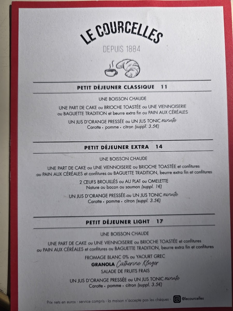 Open late, Le Courcelles prides itself on being a rendezvous point for locals rather than tourists, enhancing the genuine dining experience. With a small breakfast offering of coffee, juice, and a buttery croissant for only 11 euros, it’s hard to resist indulging in a morning treat before delving into the city’s sights.