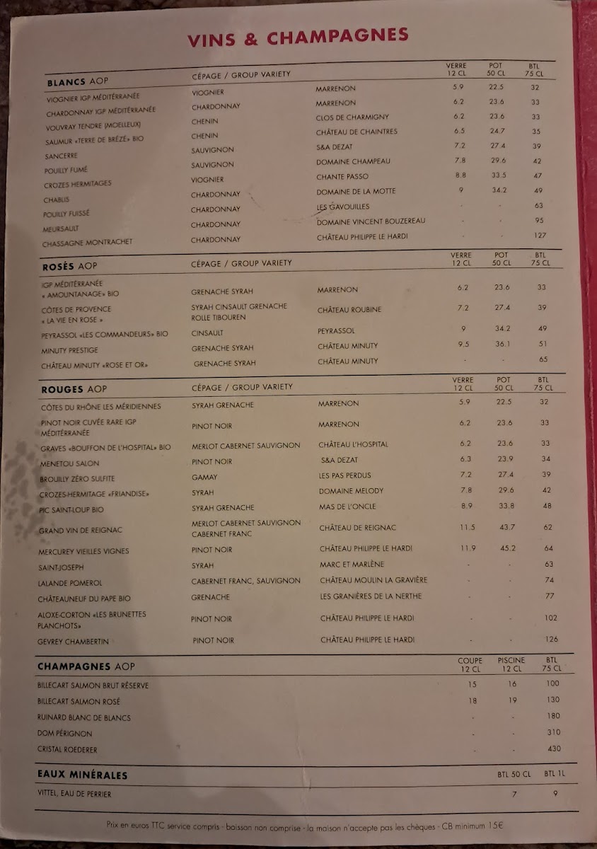 “ We stayed nearby and found this charming brasserie. We were pleased to find them open quite late and had dinner on two occasions during our trip. We went back the second evening because we enjoyed the fresh, authentic French cuisine. During both meals, we received friendly service and felt welcome, and it was fairly busy both evenings we were there. The food is delicious; excellent place to try some seafood. The escargot was our favourite among several restaurants that we tried (including a Michelin star) during our 6 day trip. Our server made good recommendations, was attentive and quite funny! We would love to go back. The menu indicated that it had been there since 1884, and it truly felt like a little piece of French history, being there. ”